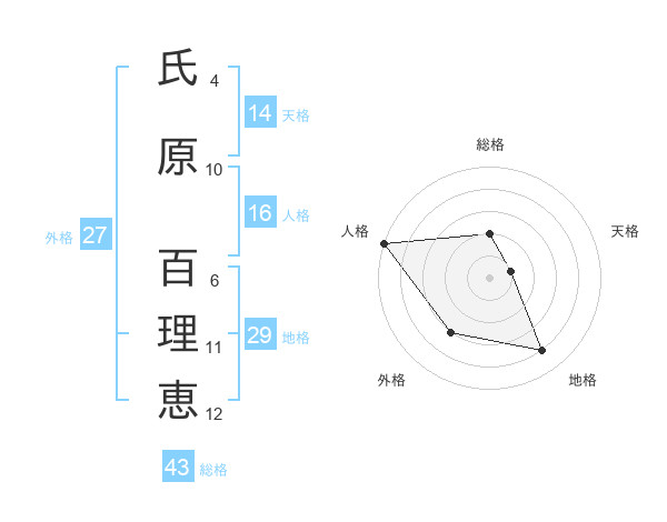 氏原 百理恵さんを姓名の画数から五運を鑑定