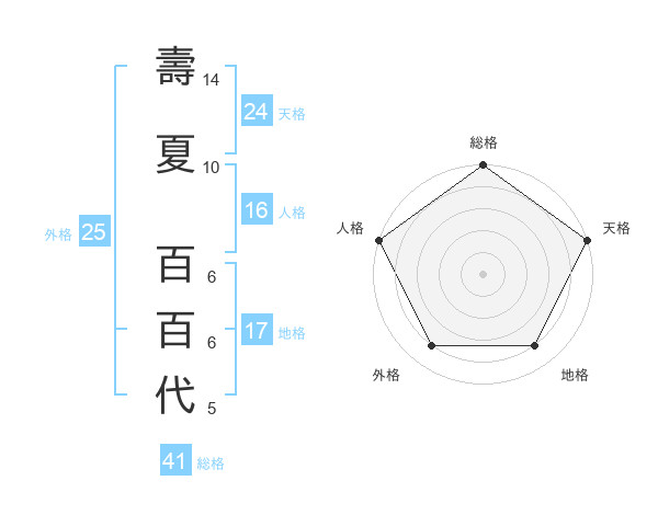 壽夏 百百代さんを姓名の画数から五運を鑑定