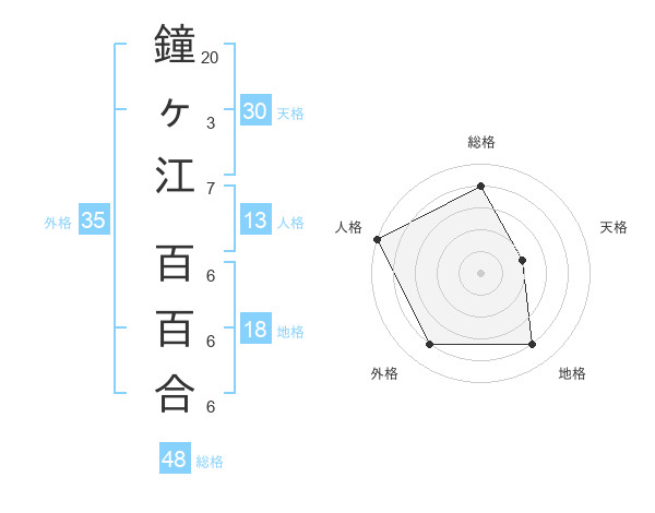 鐘ヶ江 百百合さんを姓名の画数から五運を鑑定