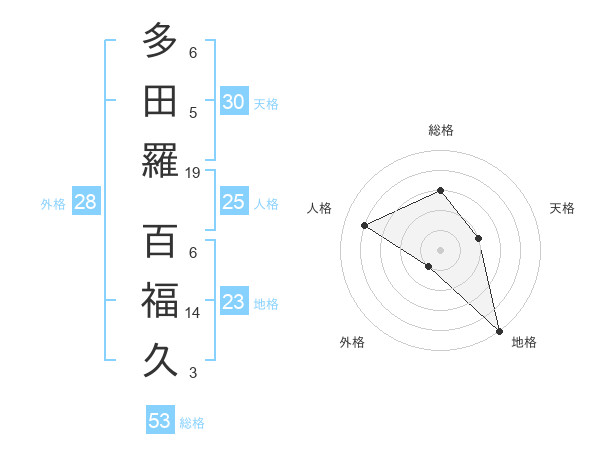 多田羅 百福久さんを姓名の画数から五運を鑑定