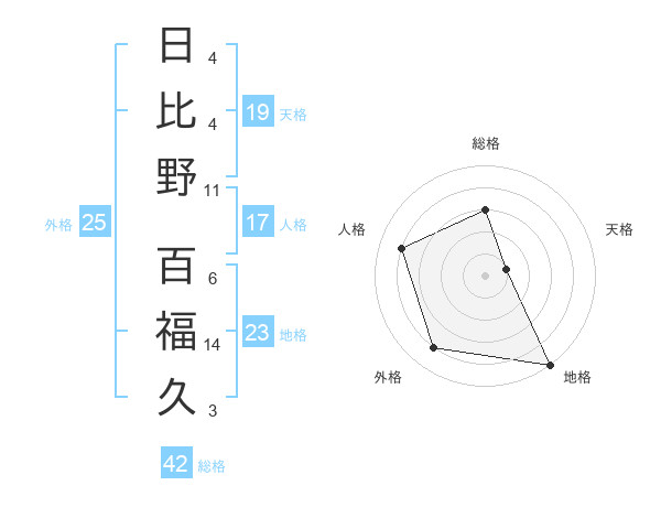 日比野 百福久さんを姓名の画数から五運を鑑定