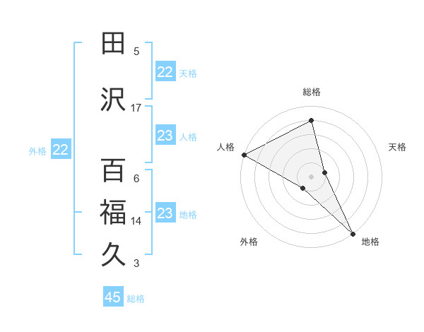 田沢 百福久さんの総格は45画の4点!