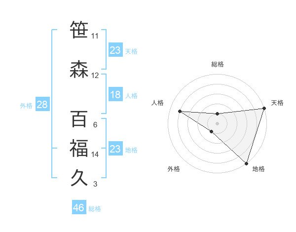 笹森 百福久さんの天格は23画の5点!