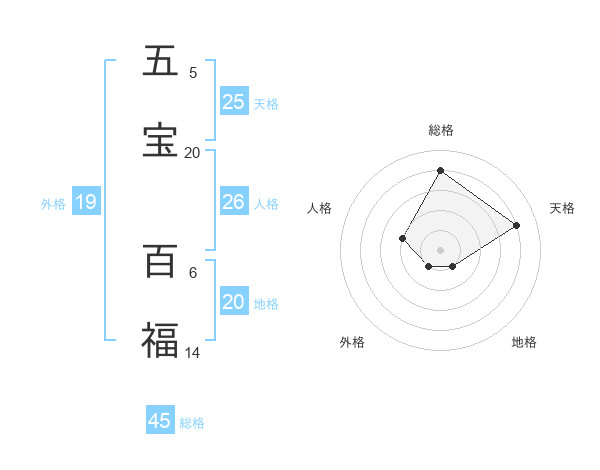 五宝 百福さんの地格は20画の1点!
