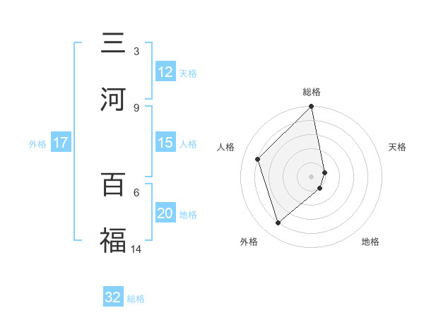 三河 百福さんの総格は32画の5点!