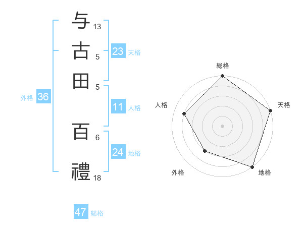 与古田 百禮さんを姓名の画数から五運を鑑定