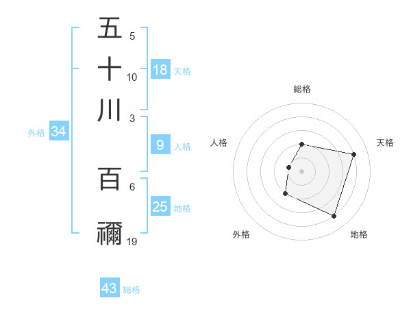 五十川 百禰さんを姓名の画数から五運を鑑定