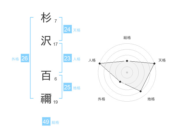 杉沢 百禰さんを姓名の画数から五運を鑑定