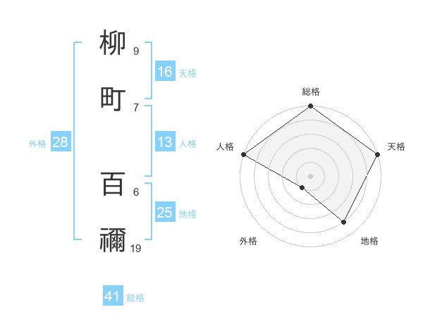 柳町 百禰さんの天格は16画の5点!