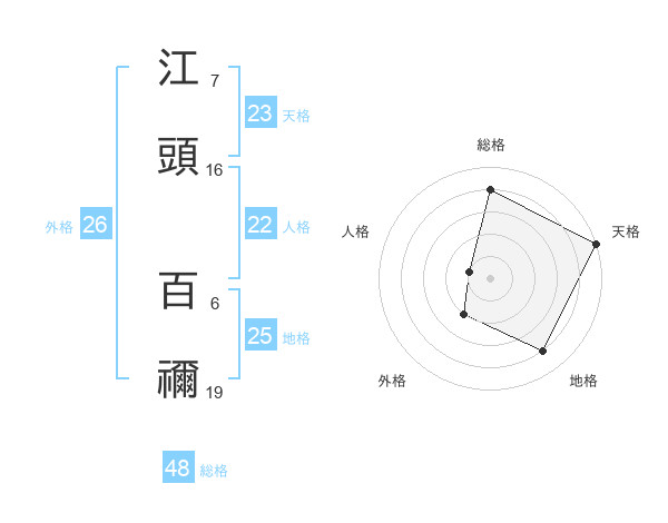 江頭 百禰さんを姓名の画数から五運を鑑定