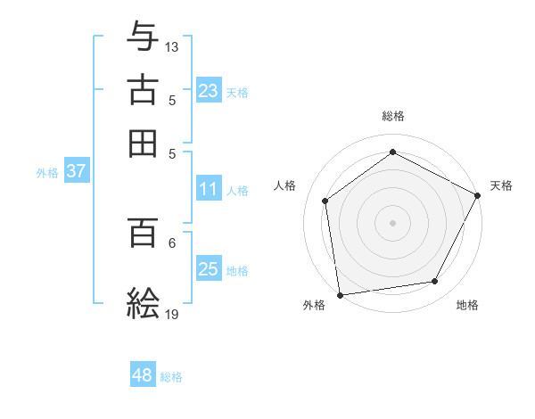 与古田 百絵さんの天格は23画の5点!