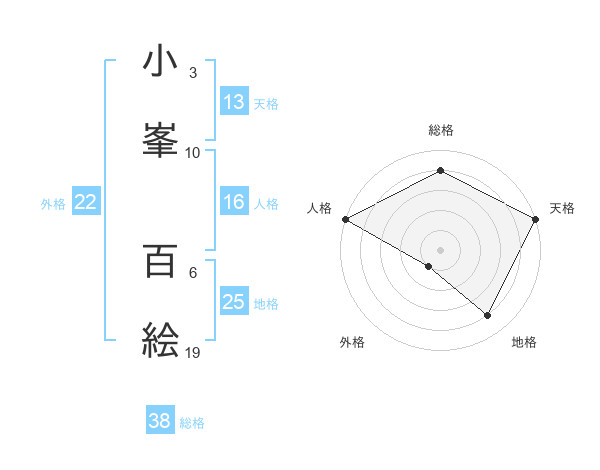 小峯 百絵さんを姓名の画数から五運を鑑定