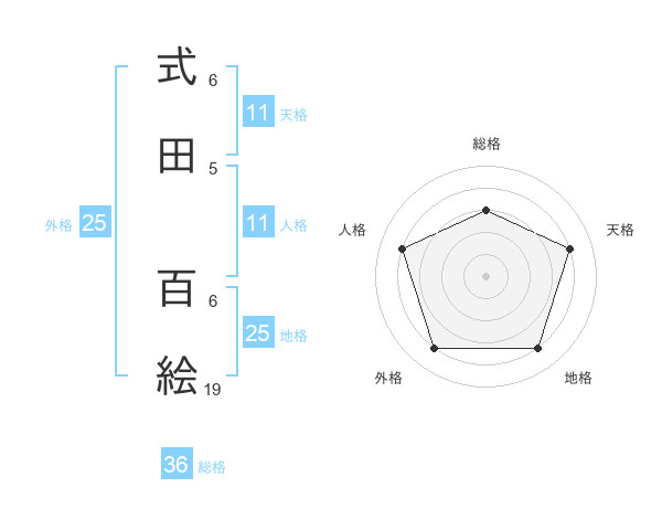 式田 百絵さんの外格は25画の4点!