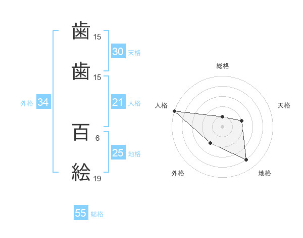 歯歯 百絵さんの総格は55画の1点!
