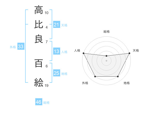 高比良 百絵さんを姓名の画数から五運を鑑定