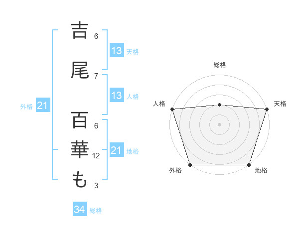 吉尾 百華もさんの天格は13画の5点!