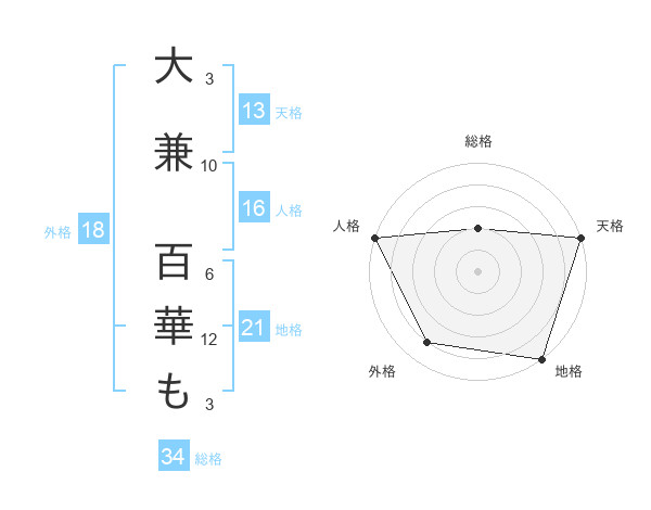 大兼 百華もさんの天格は13画の5点!