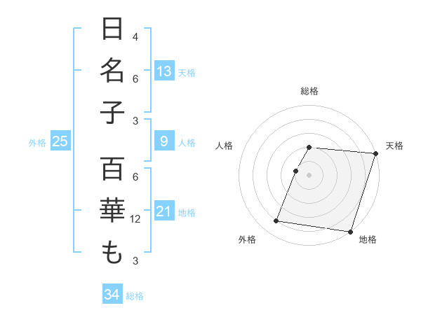 日名子 百華もさんを姓名の画数から五運を鑑定