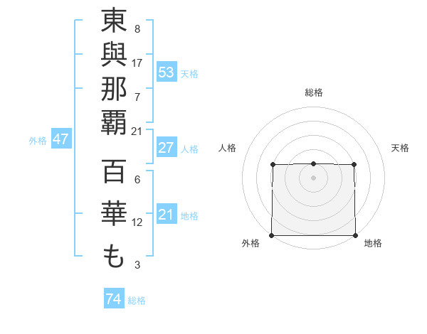 東與那覇 百華もさんの外格は47画の5点!