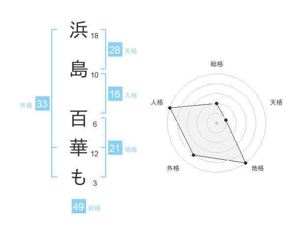 浜島 百華もさんを姓名の画数から五運を鑑定