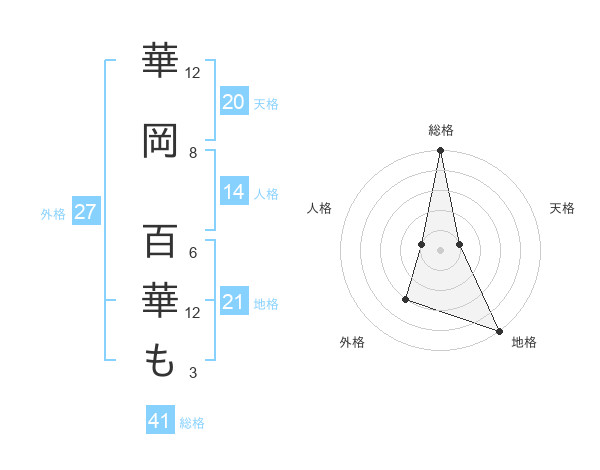 華岡 百華もさんを姓名の画数から五運を鑑定
