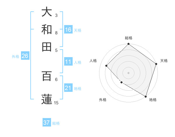 大和田 百蓮さんを姓名の画数から五運を鑑定