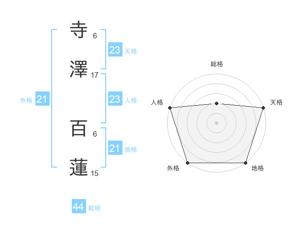 寺澤 百蓮さんの総格は44画の2点!