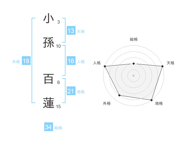 小孫 百蓮さんの天格は13画の5点!