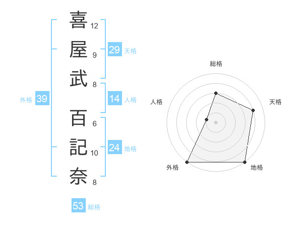 喜屋武 百記奈さんの外格は39画の5点!