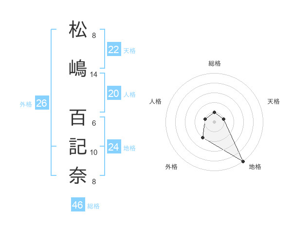 松嶋 百記奈さんを姓名の画数から五運を鑑定