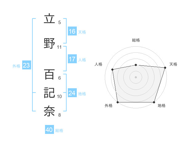 立野 百記奈さんの外格は23画の5点!