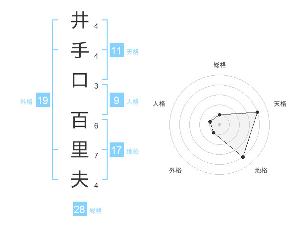 井手口 百里夫さんを姓名の画数から五運を鑑定
