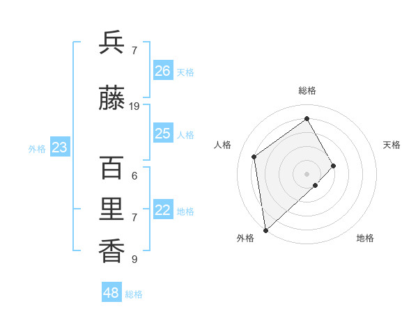 兵藤 百里香さんを姓名の画数から五運を鑑定