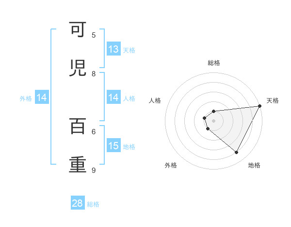 可児 百重さんの天格は13画の5点!