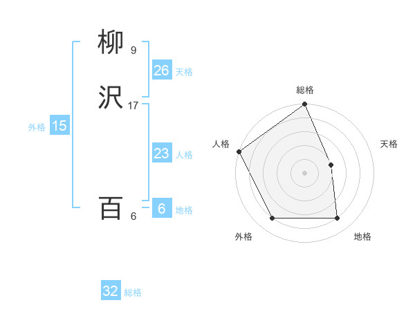 柳沢 百さんの総格は32画の5点!