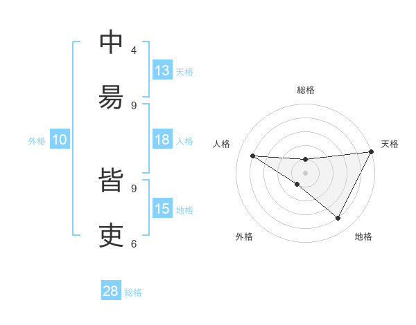 中昜 皆吏さんを姓名の画数から五運を鑑定