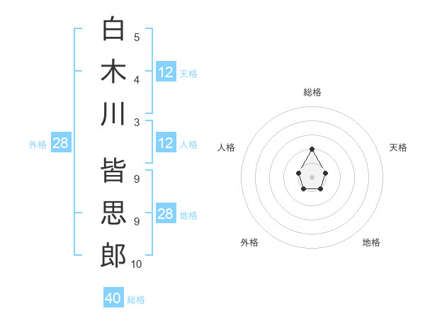 白木川 皆思郎さんの天格は12画の1点!