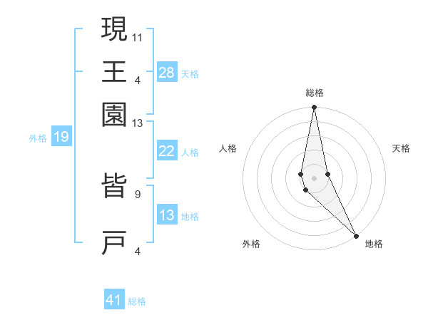 現王園 皆戸さんを姓名の画数から五運を鑑定