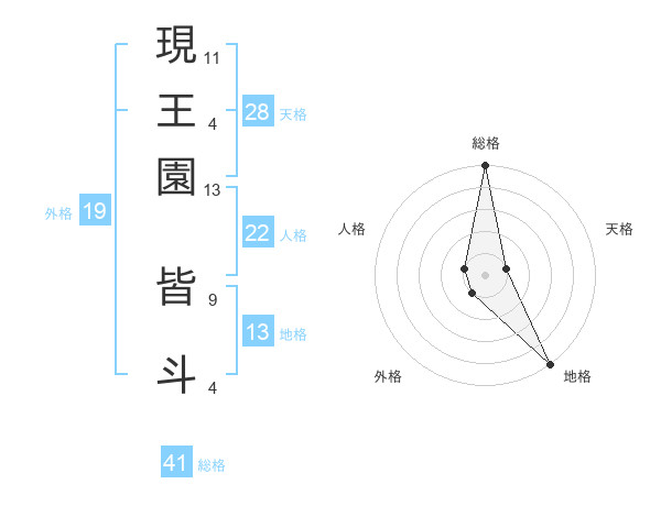 現王園 皆斗さんを姓名の画数から五運を鑑定