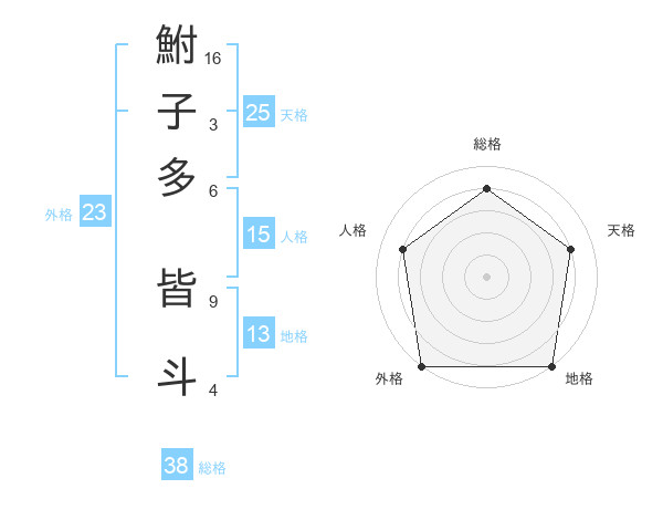 鮒子多 皆斗さんを姓名の画数から五運を鑑定