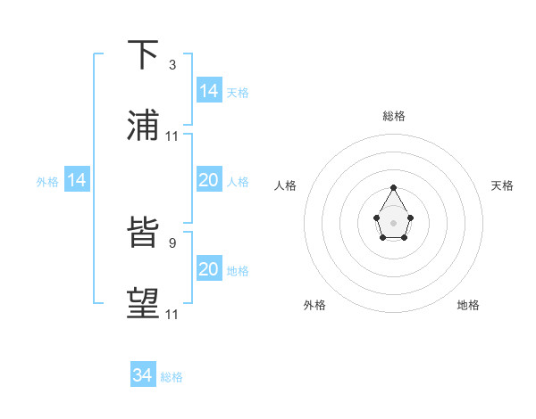 下浦 皆望さんを姓名の画数から五運を鑑定