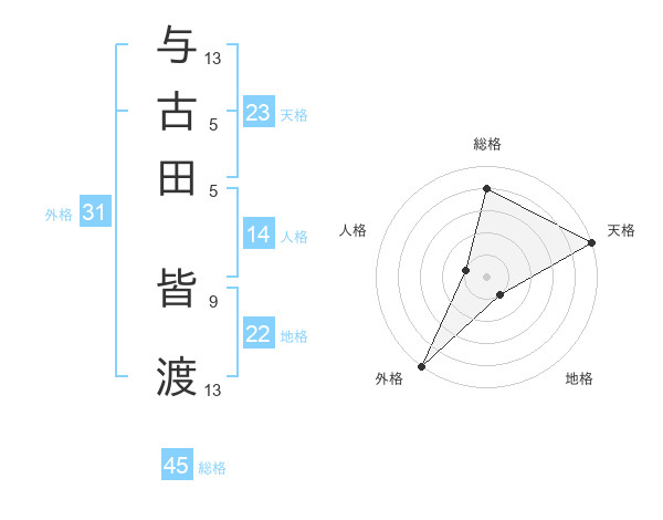 与古田 皆渡さんを姓名の画数から五運を鑑定