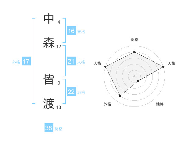 中森 皆渡さんを姓名の画数から五運を鑑定