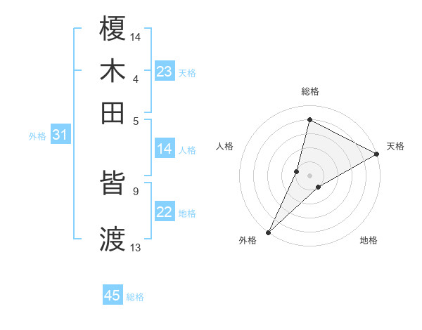 榎木田 皆渡さんを姓名の画数から五運を鑑定