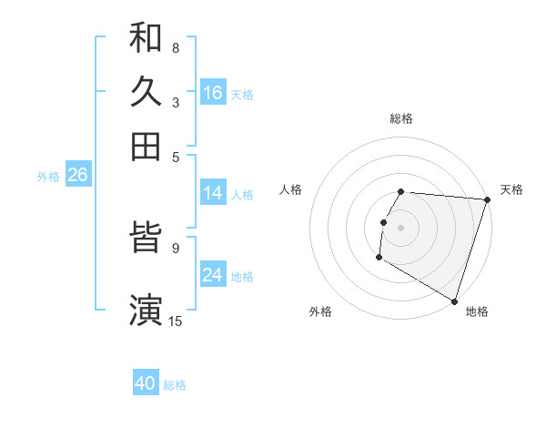 和久田 皆演さんの総格は40画の2点!