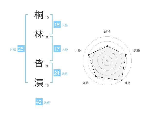 桐林 皆演さんを姓名の画数から五運を鑑定