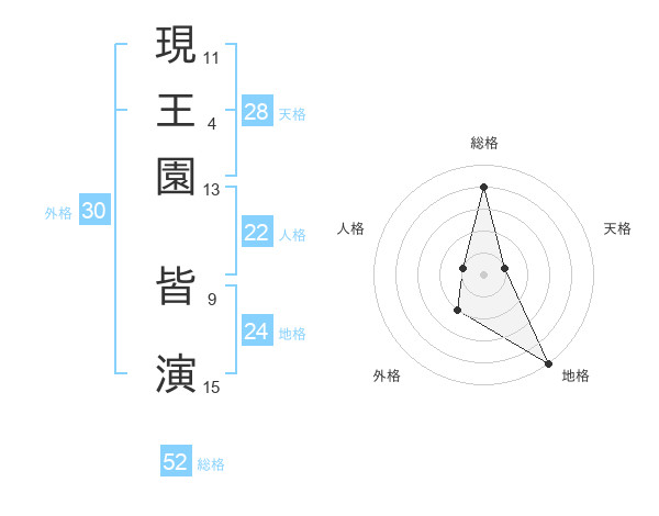 現王園 皆演さんを姓名の画数から五運を鑑定