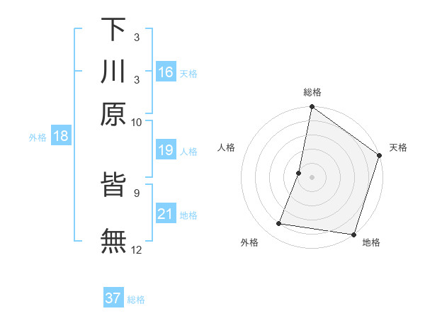 下川原 皆無さんを姓名の画数から五運を鑑定