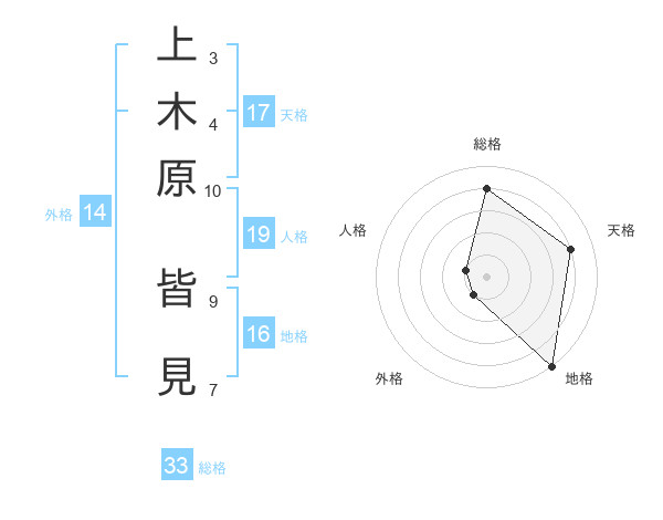 上木原 皆見さんを姓名の画数から五運を鑑定