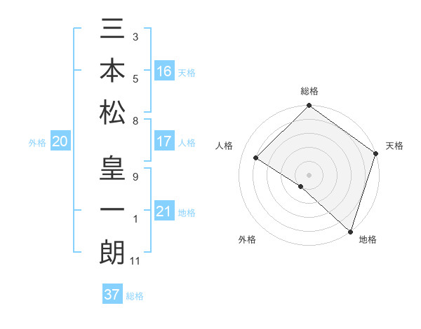 三本松 皇一朗さんを姓名の画数から五運を鑑定